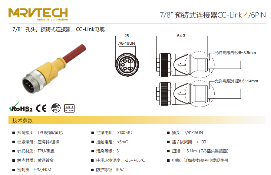 78”口金-プレキャストコネクタ-CC-Linkケーブル