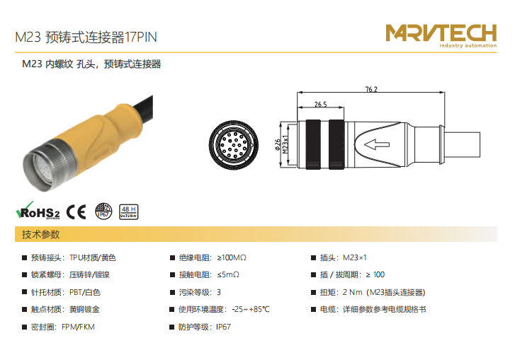 M 23-雌ねじ-口金-プレキャストコネクタ-17 PIN