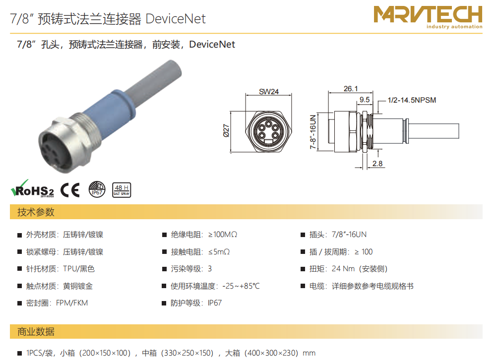78”口金-コネクタ-フロントマウント-DeviceNet