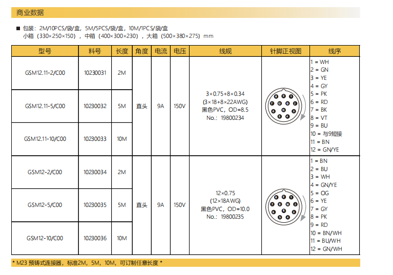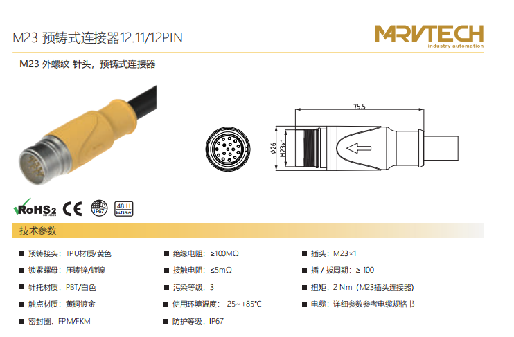 M 23-雄ねじ-針-プレキャストコネクタ-12.11+12 PIN