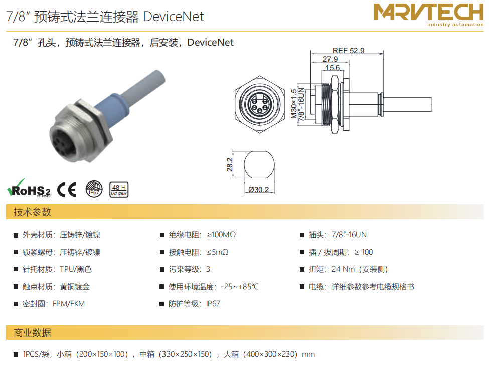 78”口金コネクタ後にDeviceNetを取り付ける
