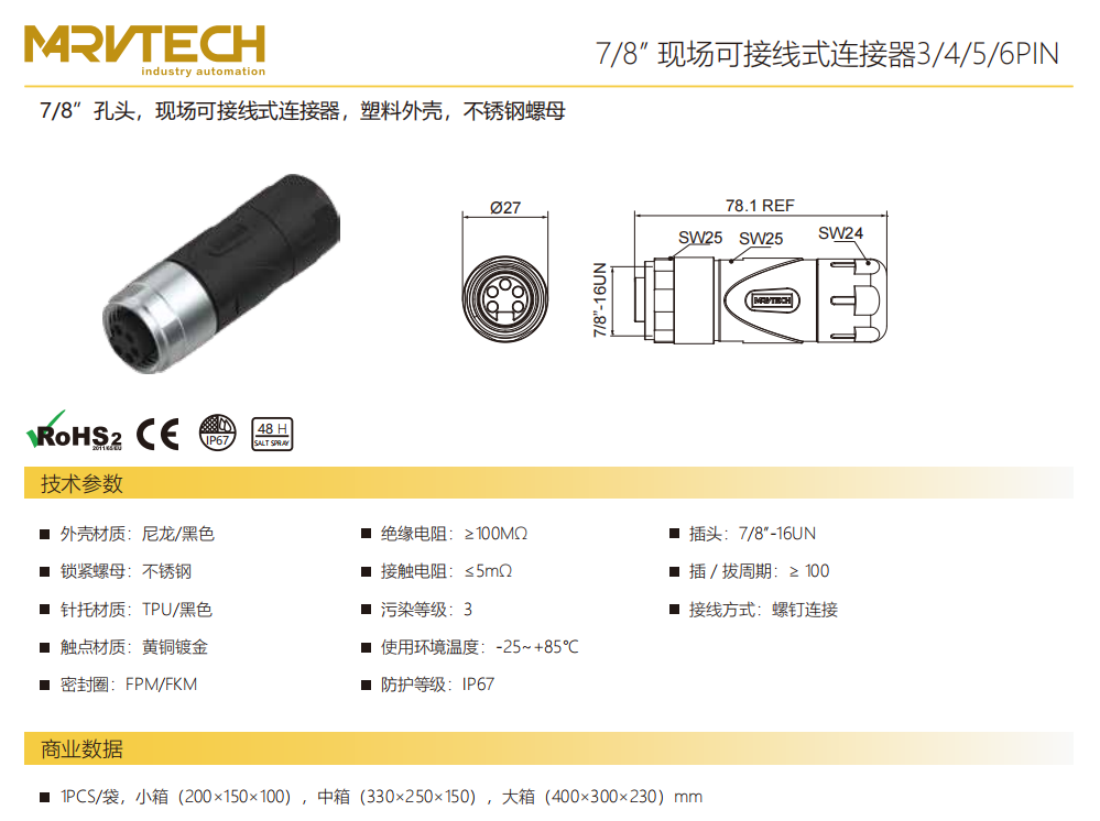 78インチ口金フィールドコネクタハウジングステ