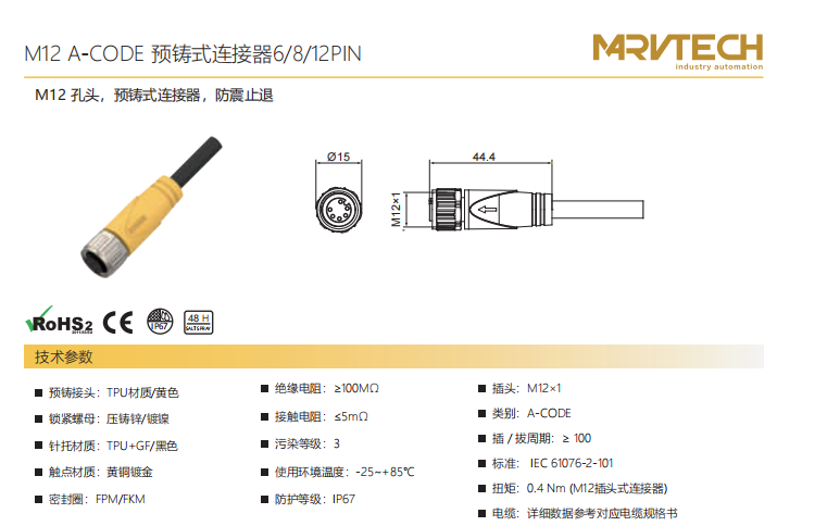 M 12-口金-プレキャストコネクタ-防振後退防止-6+8+12 PIN