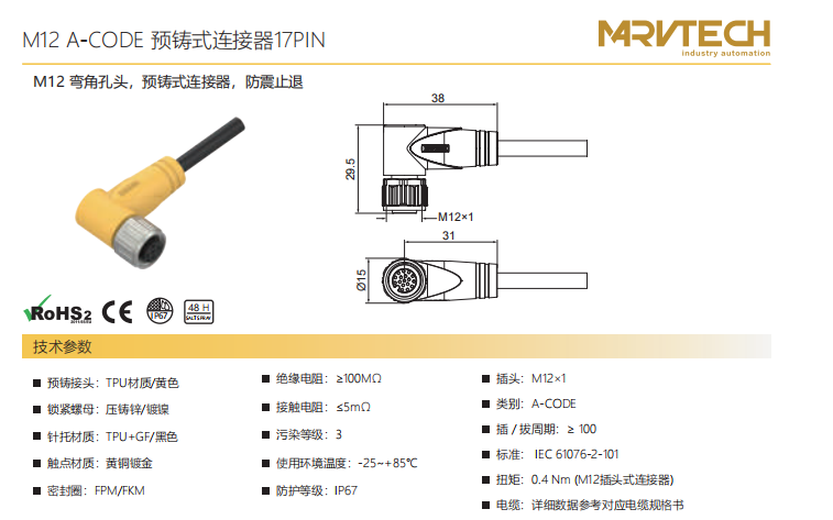 M 12-針-プレキャストコネクタ-防振後退防止-2+3+4+4.5+5 PIN