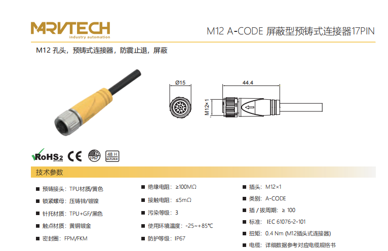 M 12-口金-プレキャストコネクタ-防振後退防止-シールド-17 PIN