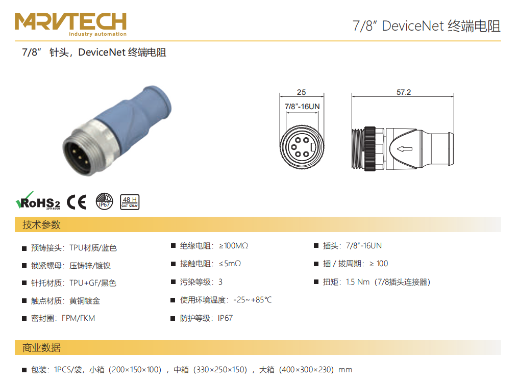 78”針-DeviceNet終端抵抗