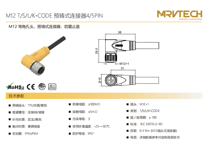 M 12-針-プレキャストコネクタ-防振後退防止-4+5 PIN