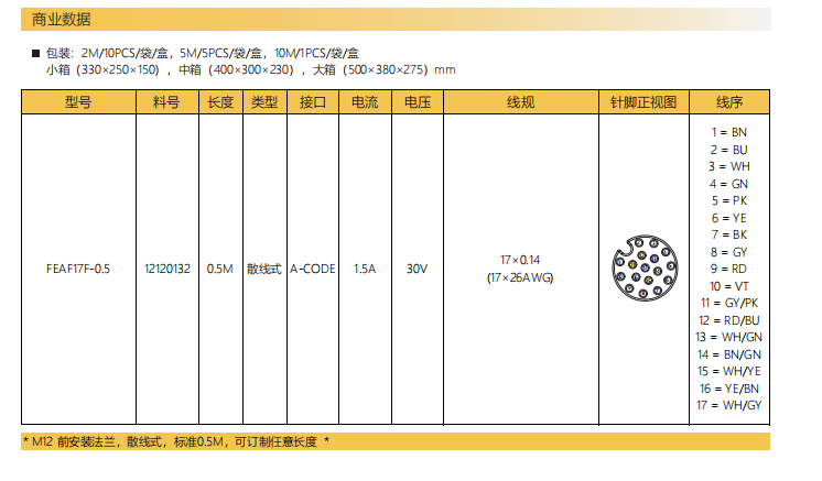 M 12-口金-フランジコネクタ-前取付-散線式-17 PIN