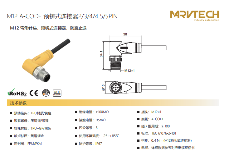 M 12-コーナーニードル-プレキャストコネクタ-防振後退防止-2+3+4+4.5+5 PIN