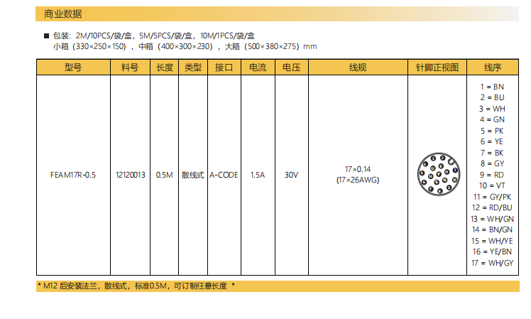M 12-ピン-フランジコネクタ-後付け-散線式-17 PIN