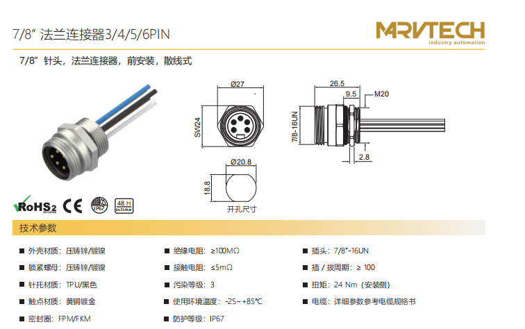 7+8"-針-フランジコネクタ-前取付け-散線式-3+4+5+6 PIN