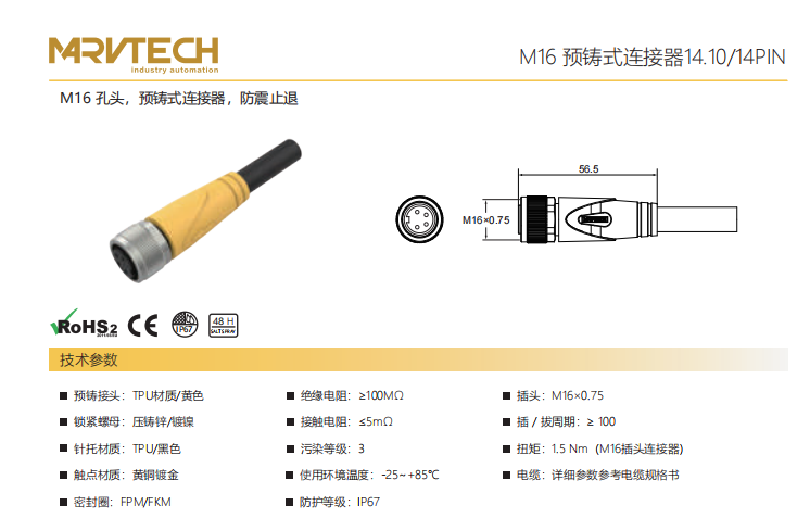 M 16-口金-プレキャストコネクタ-防振後退防止-14.10+14 PIN
