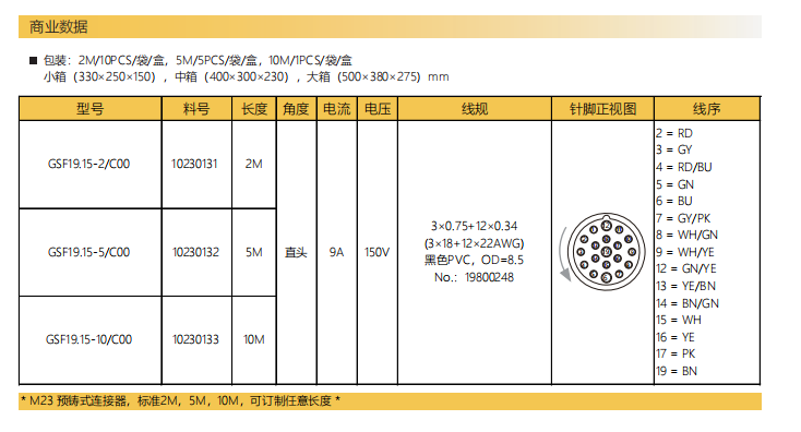M 23-雄ねじ-口金-プレキャストコネクタ-19.15 PIN