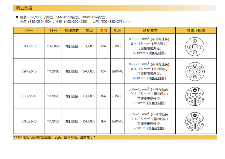 M 12-針-現場配線可能コネクタ-プラスチックケース金属ナット-4+5 PIN