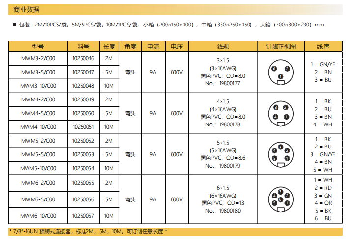 7+8"-針-プレキャストコネクタ-3+4+5+6 PIN