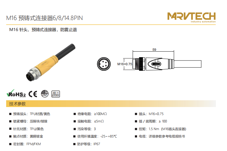 M 16-針-プレキャストコネクタ-防振後退防止-6+8+14.8 PIN