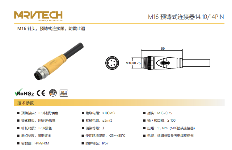 M 16-針-プレキャストコネクタ-防振後退防止-14.10+14 PIN