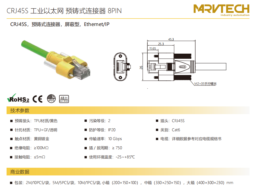 CRJ 45 S-プレキャスト-コネクタ-シールドタイプ-8 PIN