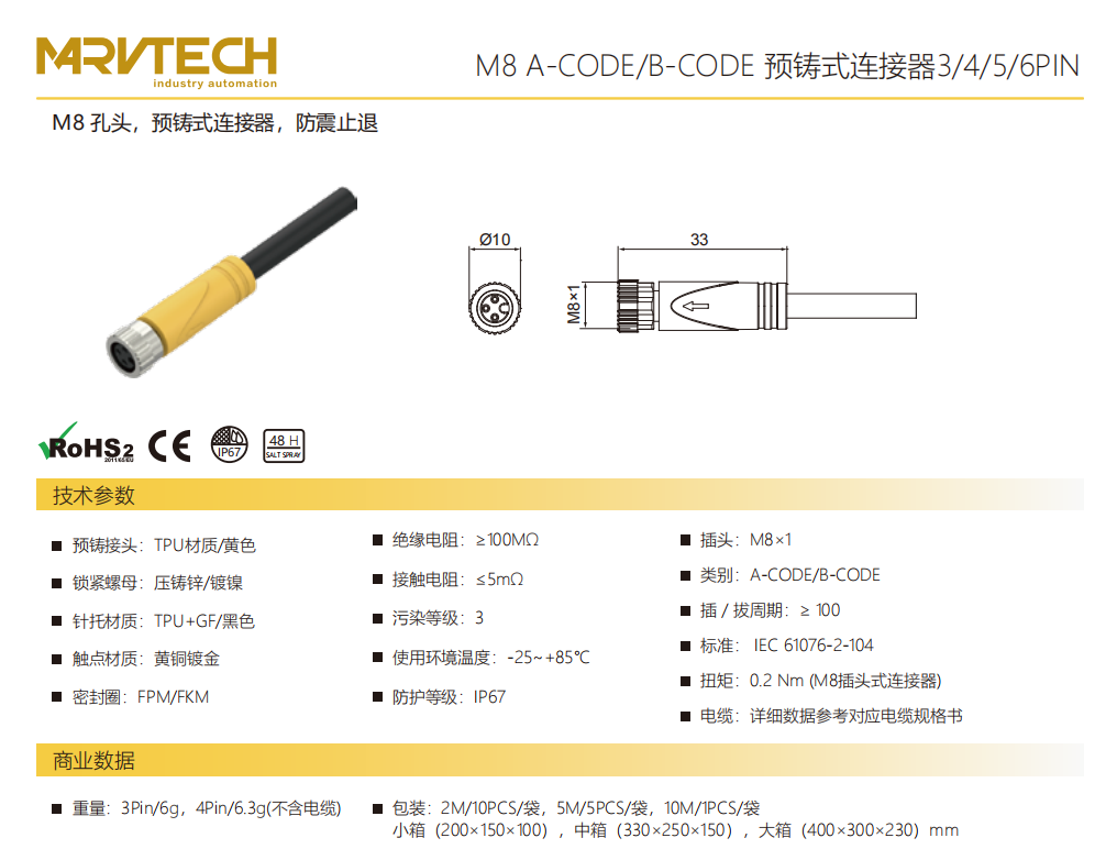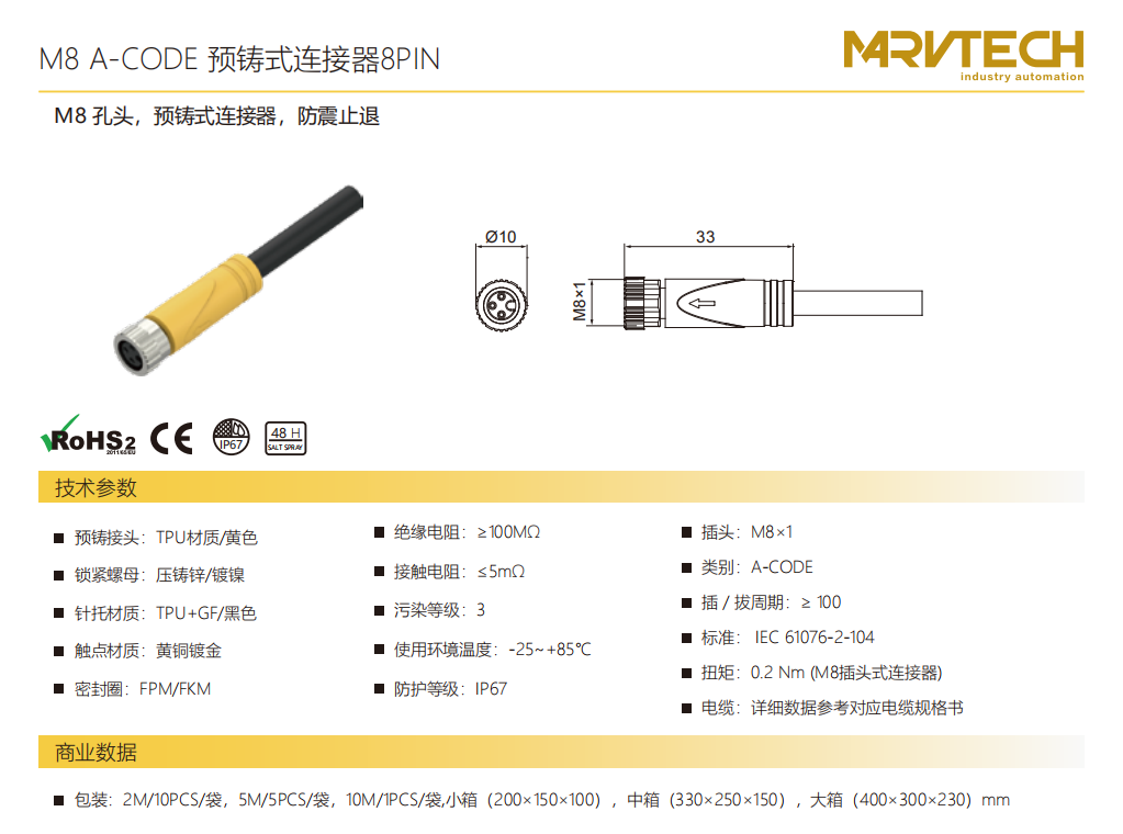 シールド型プレキャストコネクタ-M 8ピン