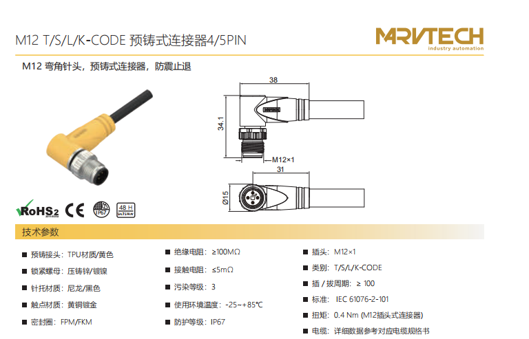 M 12-コーナーニードル-プレキャストコネクタ-防振後退防止-4+5 PIN