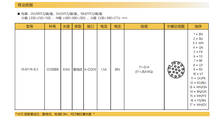 M 12-口金-フランジコネクタ-後付け-散線式-17 PIN