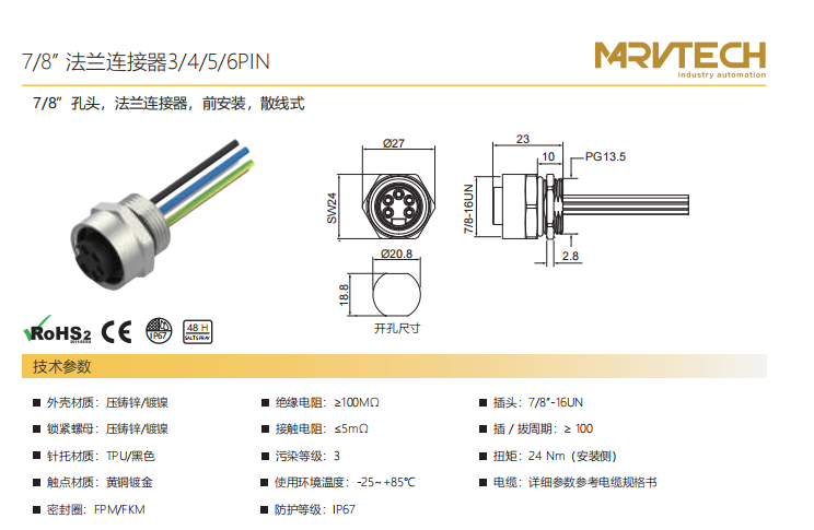 7+8"-口金-フランジコネクタ-前取付け-散線式-3+4+5+6 PIN