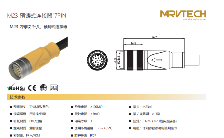 M 23-雌ねじ-針-プレキャストコネクタ-17 PIN