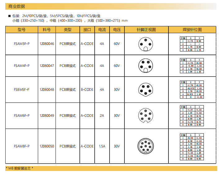 M 8-ニードル-フランジコネクタ-フロントマウント-PCB溶接式-3+4+5+6+8 PIN