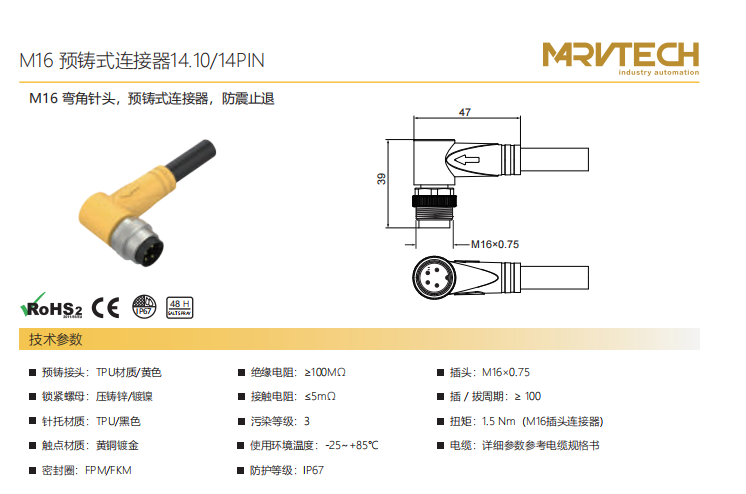 M 16-コーナーニードル-プレキャストコネクタ-防振後退-14.10+14 PIN