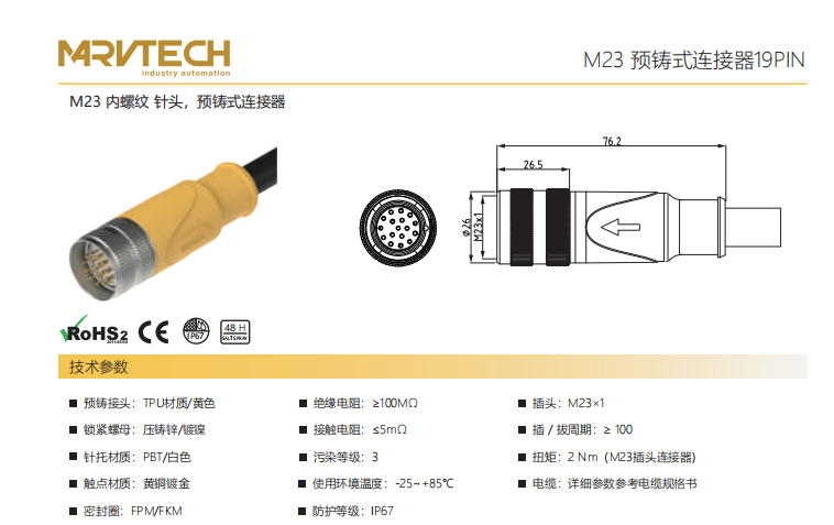 M 23-雌ねじ-針-プレキャストコネクタ-19.15 PIN