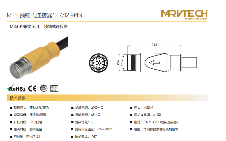 M 23-雄ねじ-口金-プレキャストコネクタ-12.7+12.9 PIN