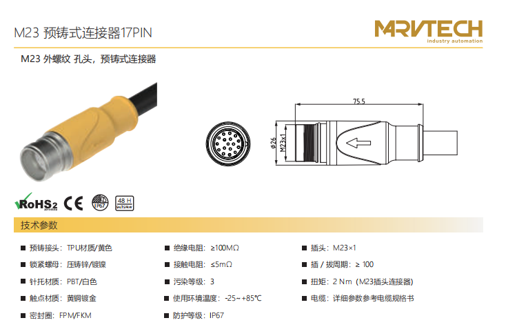M 23-雄ねじ-口金-プレキャストコネクタ-17 PIN