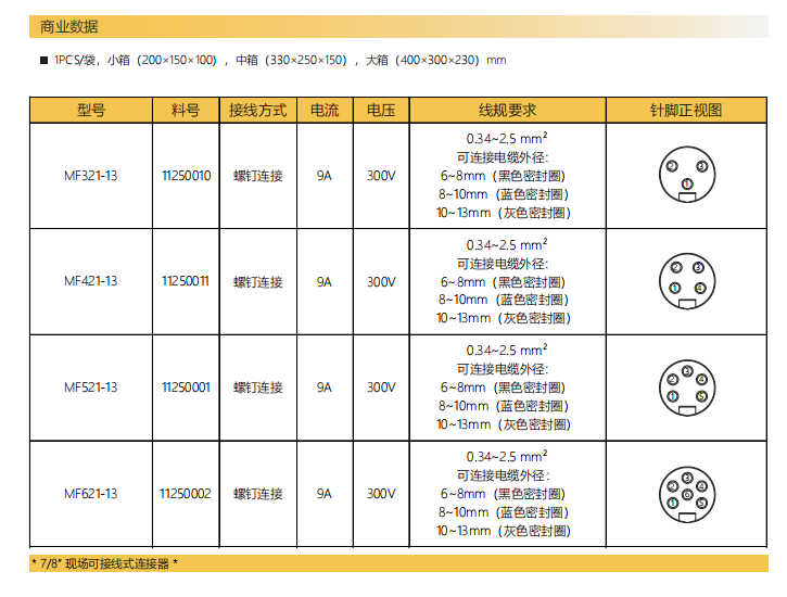 7/8"-針-プレキャストコネクタ-3+4+5+6 PIN