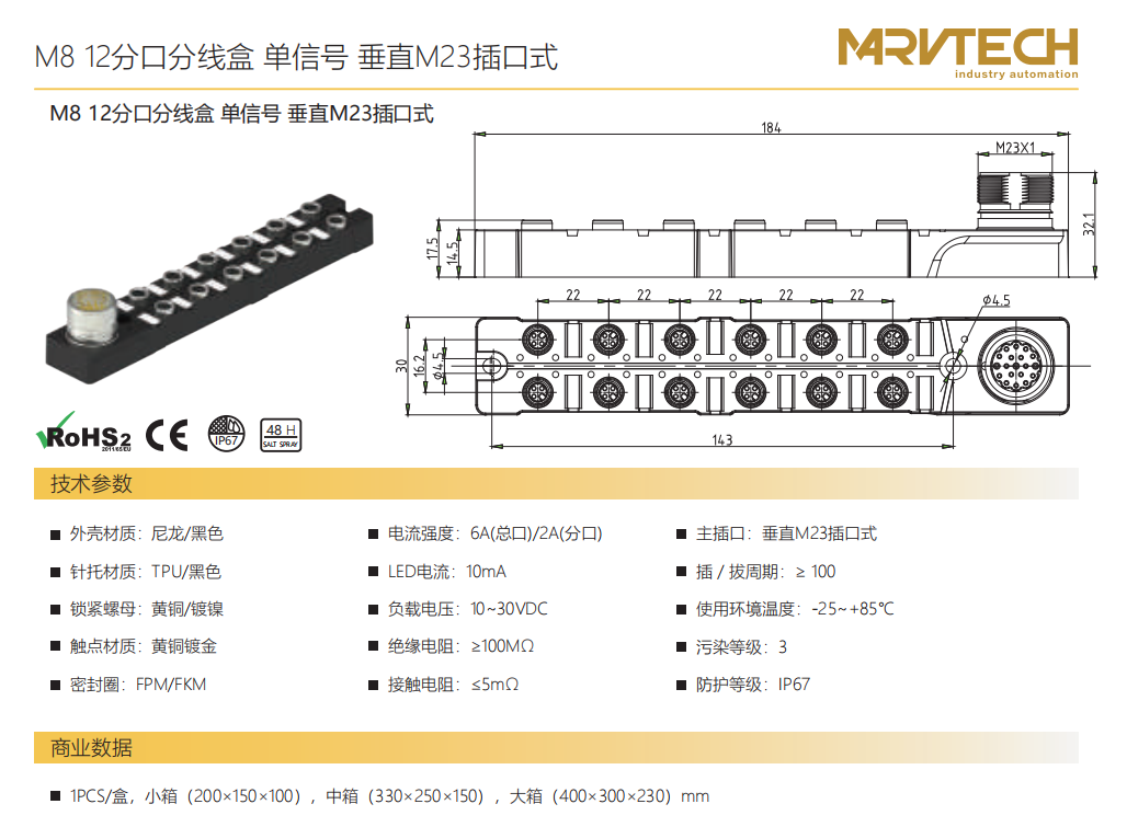 M 8 12スプリットスプリットボックス-単信号-垂直M 23ソケット式