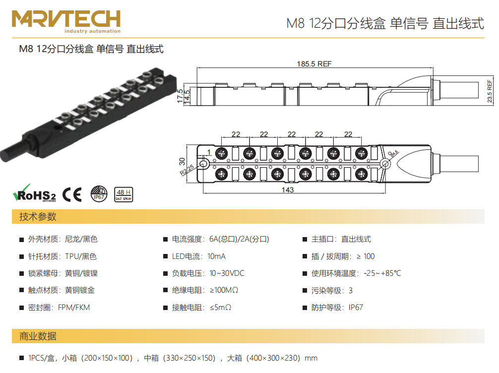 M 8 12スプリットスプリットボックス-単信号-垂直M 23ソケット式