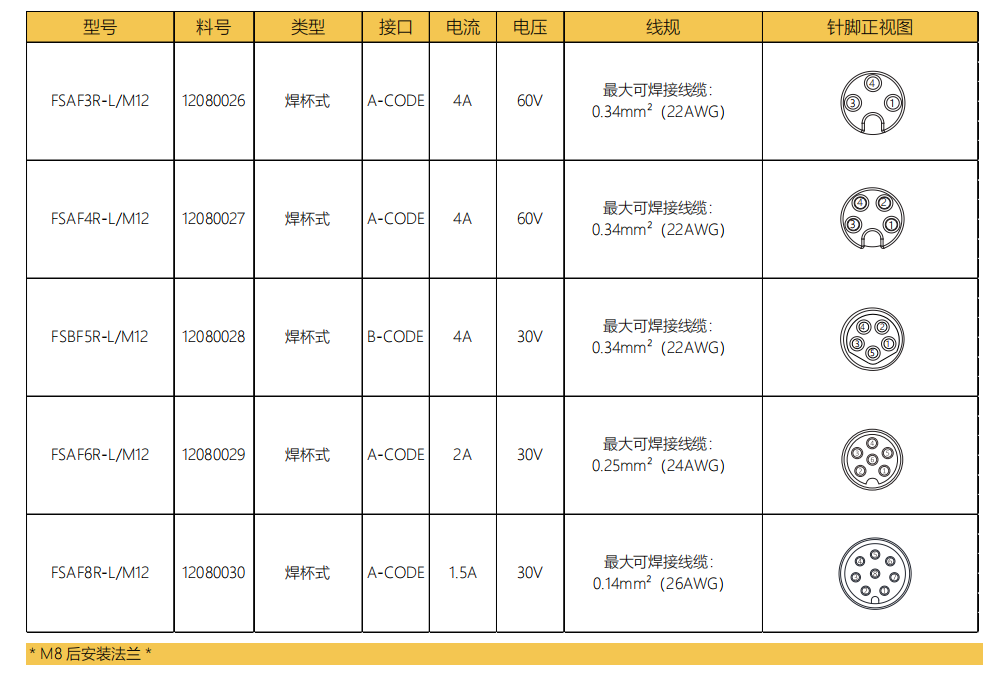 M 8口金-フランジコネクタ-後付け-PCB溶接式