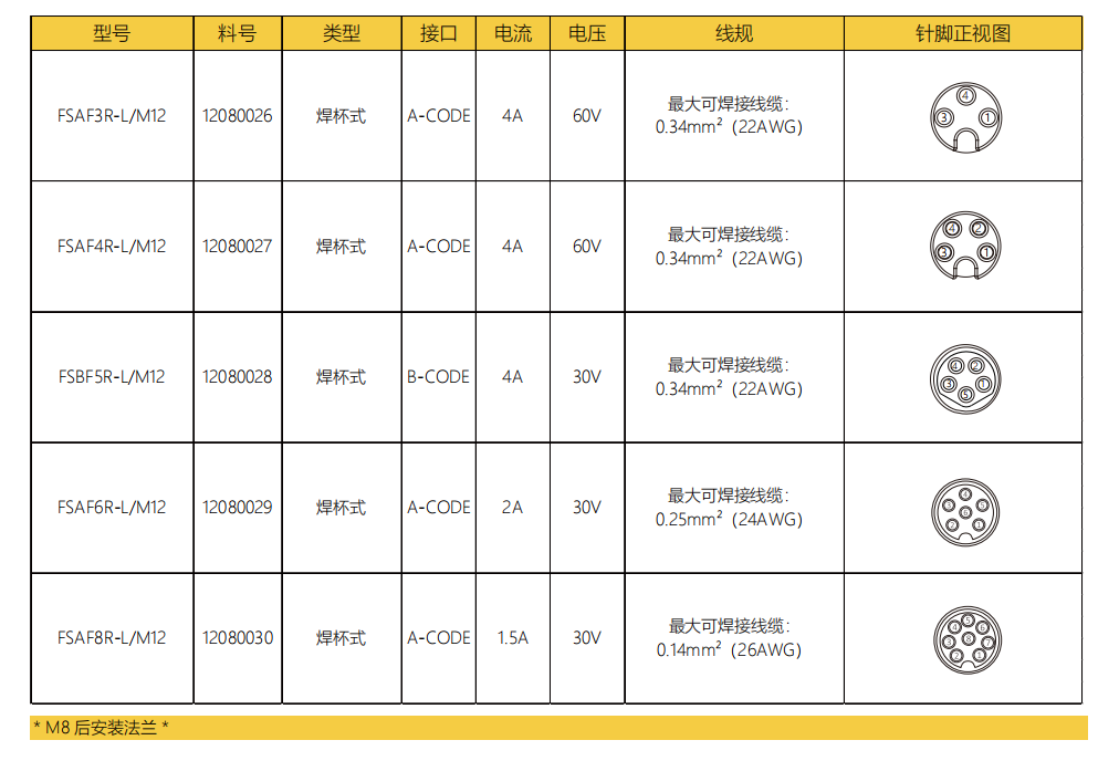 M 8口金-フランジコネクタ-後付け-散線式-3/4/5/6/8 PIN