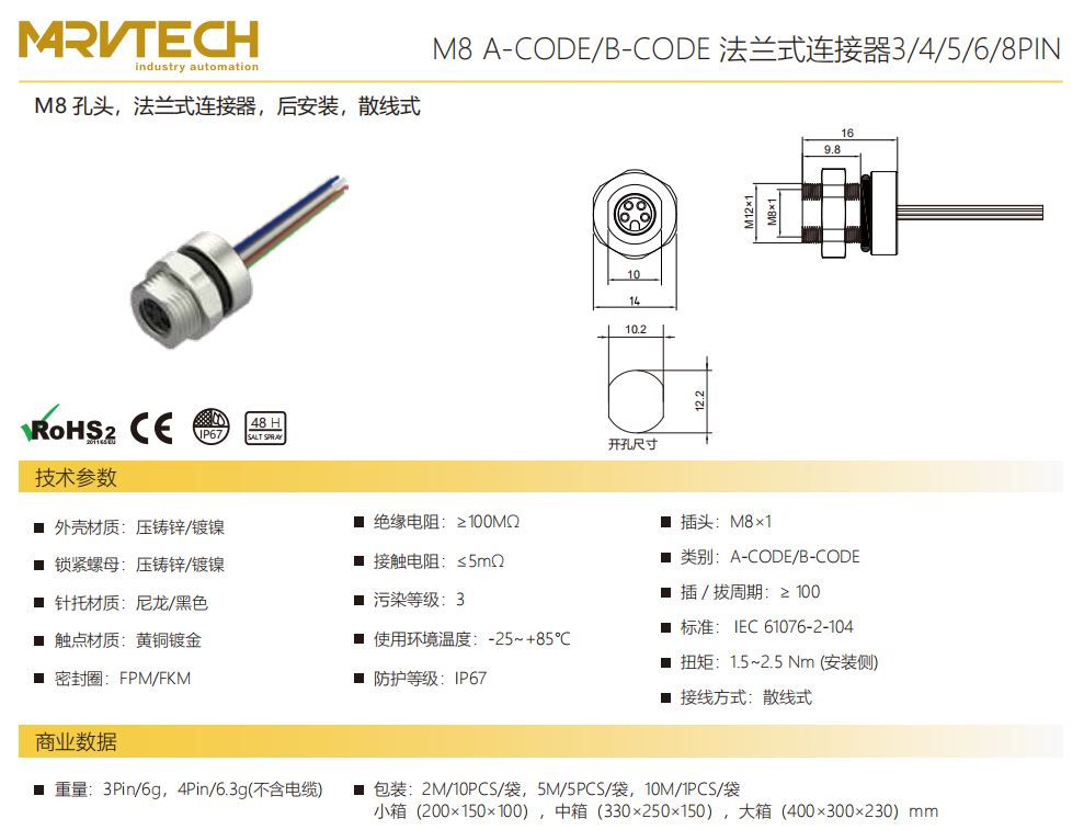 M 8口金-フランジコネクタ-後付け-溶接式-3/4/5/6/8 PIN