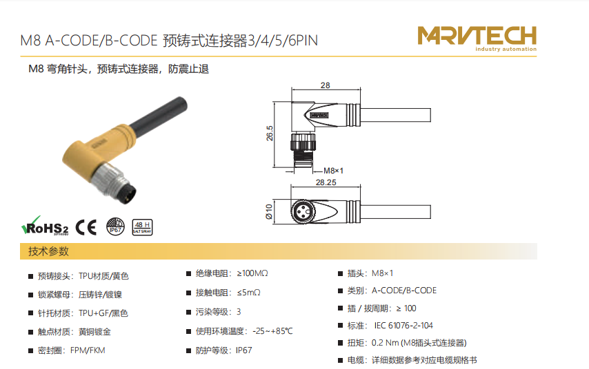 M 8-針-プレキャストコネクタ-防振後退防止-8 PIN