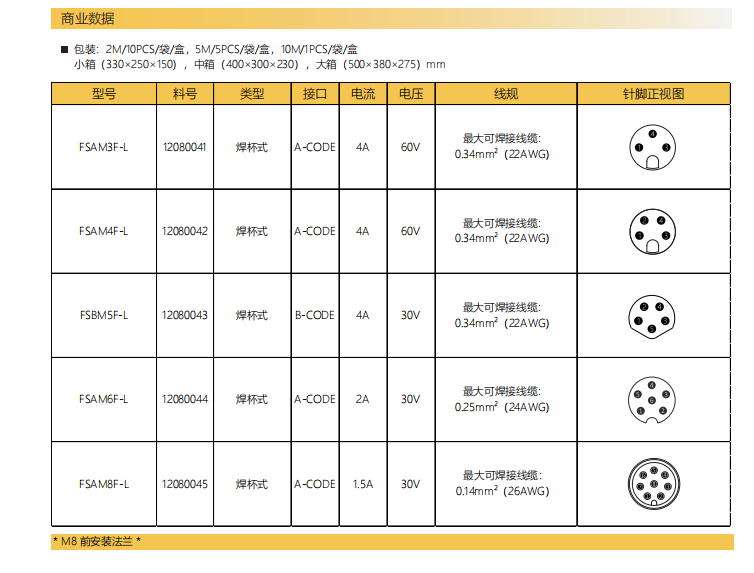 M 8-ニードル-フランジコネクタ-フロントマウント-PCB溶接式-3+4+5+6+8 PIN