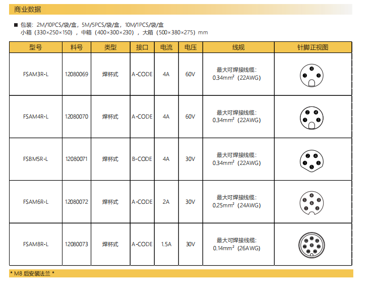 M 8-ニードル-フランジコネクタ-後付け-散線式-3+4+5+6+8 PIN