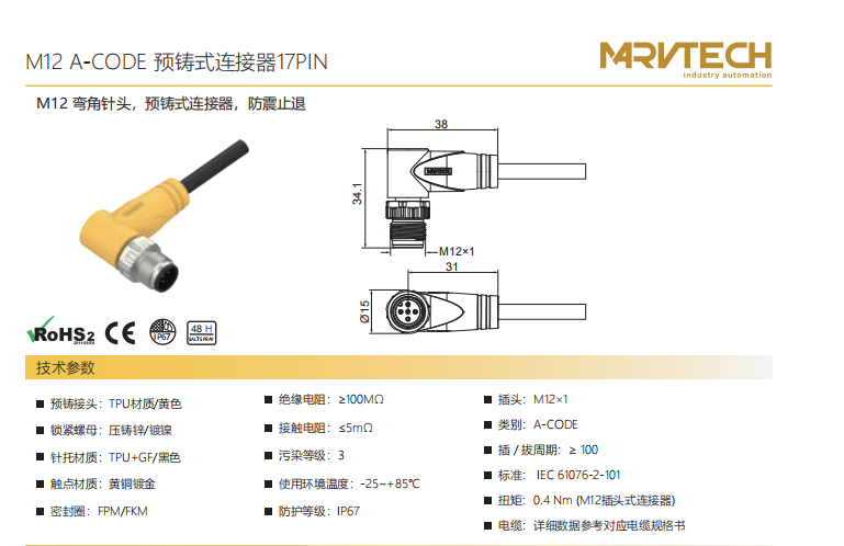 M 12-コーナーニードル-プレキャストコネクタ-防振後退防止-17 PIN