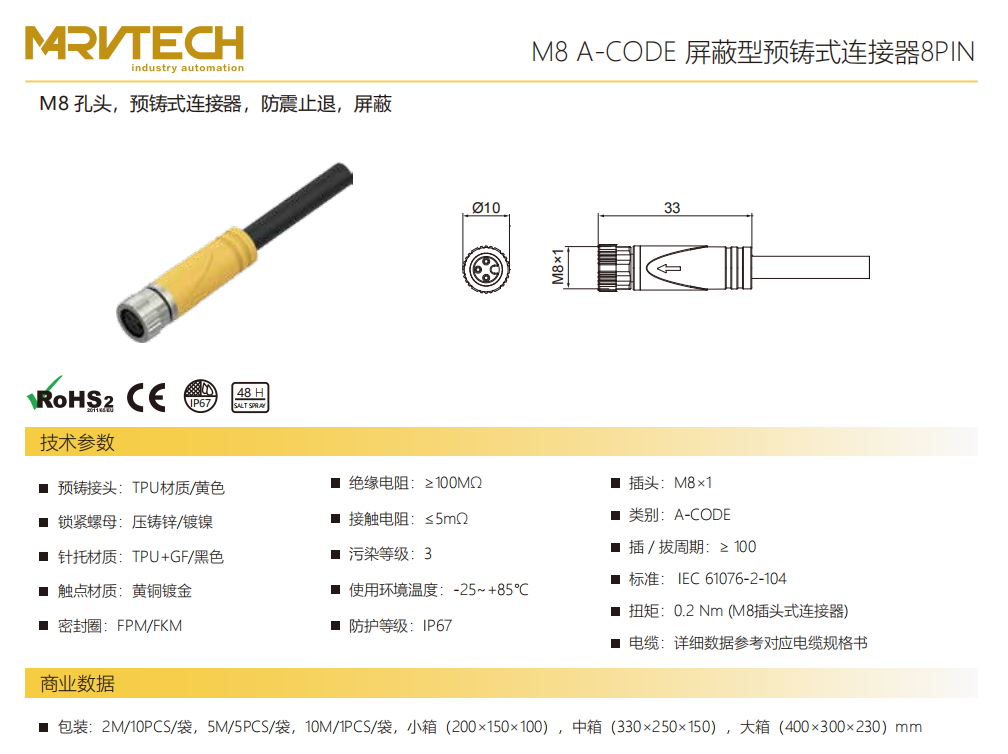 M 8口金-プレキャストコネクタ-防振後退防止-シールド-8 PIN