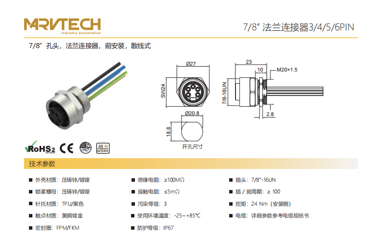 7/8"-口金-フランジコネクタ-前取付け-散線式-3+4+5+6 PIN