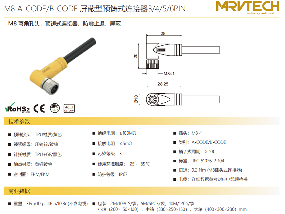 M 8コーナータップ-プレキャストコネクタ-防振後退防止-シールド-3/4/5/6 PIN