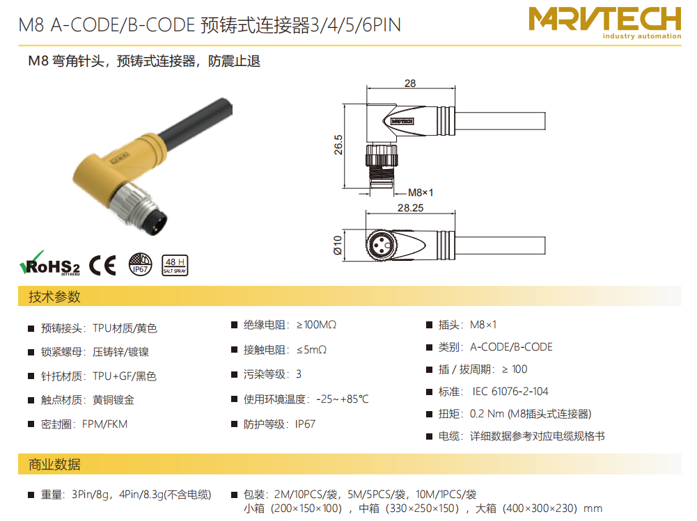 M 8コーナーニードル-プレキャストコネクタ-防振後退防止-シールド-8 PIN