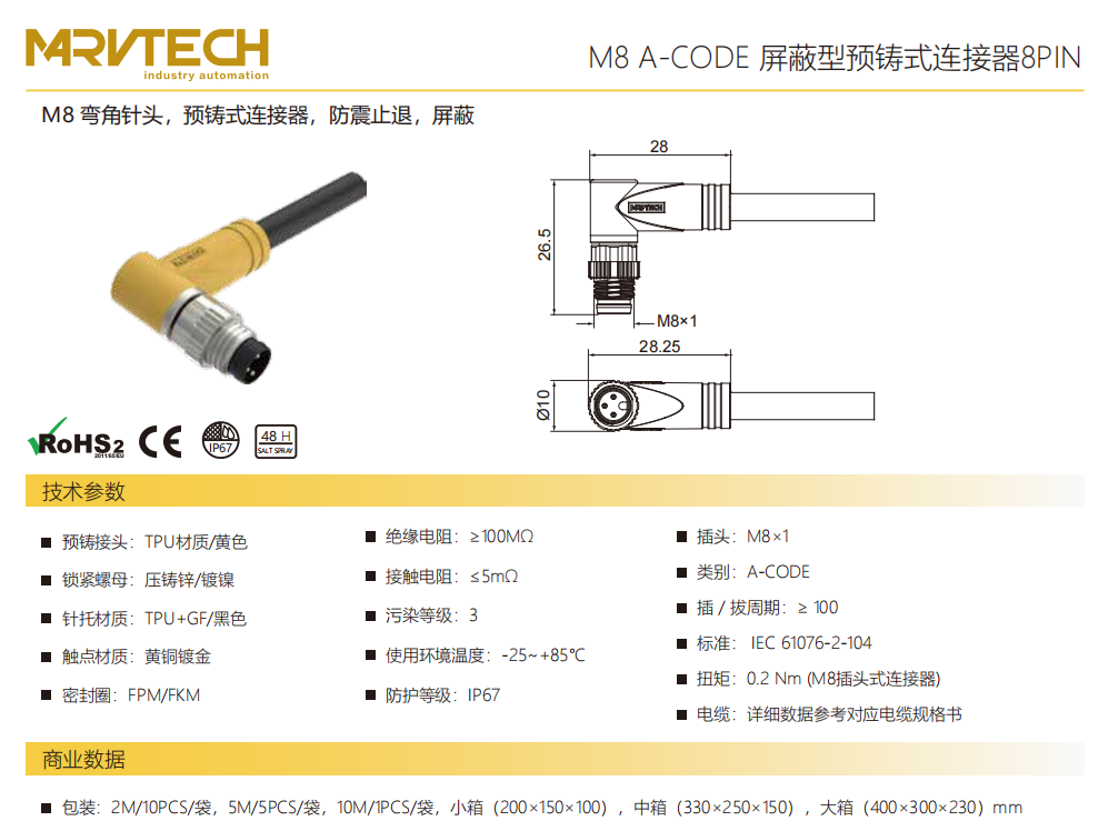 M 8コーナーニードル-プレキャストコネクタ-防振後退防止-シールド-8 PIN