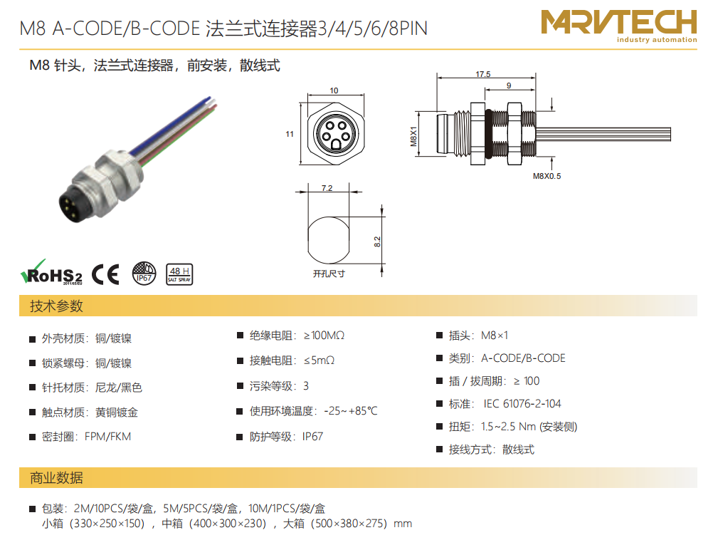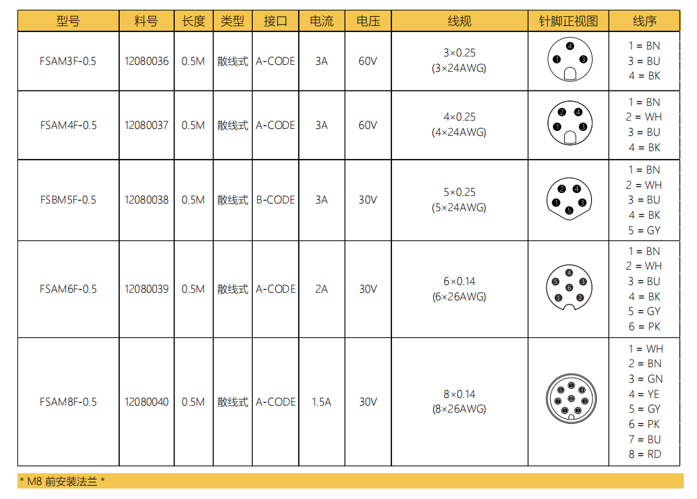 M 8ピン-フランジコネクタ-前取付け-散線式