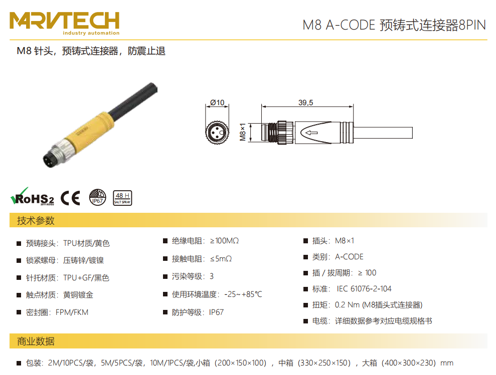M 8ピン-プレキャストコネクタ-防振後退防止-3/4/5/6 PIN