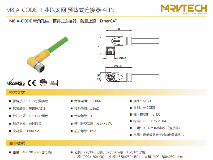 M 8-A-CODE-コーナーニードル-プレキャストコネクタ-防振後退止め-4 PIN